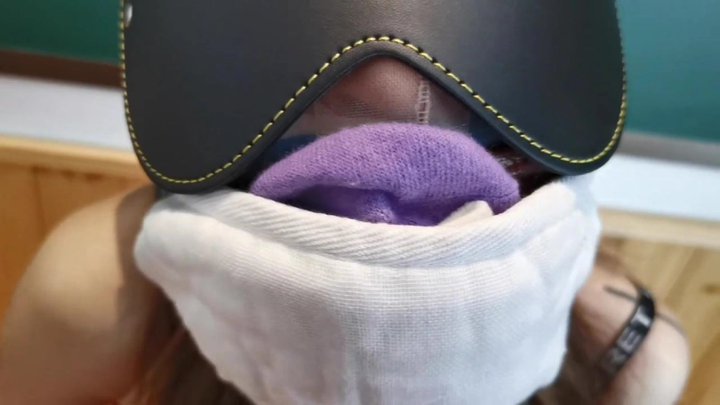 从外面回来后让她换了双颜色很性感的连裤袜,只穿内衣。先用一双棉袜套住她的双手,再用胶带缠绕固定住,防止她用手部力量将袜子蹭掉。用绳子将她的胸部紧紧的捆住,让她坐在椅子上,双腿分开分别绑在两个椅子角。双手也分别绑在椅子上,让她无法从椅子上挣脱。接下来拿来她穿了天天的肉丝塞进她的嘴里,在塞嘴时瑾萱明显皱起了眉头。自己穿过的袜子还挺嫌弃。用医用胶布封住她的嘴巴,防止她把袜子吐出来。再用绷带一圈圈的缠住她的嘴巴。接下来用一双连裤袜套住她的头部(当然也是穿了一天)。在脑后打了个结。可能你会问为什么不把袜尖部分在她的鼻子处打结,因为鼻子处我还有其他用处。拿出一卷电工胶带再次缠绕固定她的嘴部,并在面部“X”型交叉缠绕进一步固定面部的连裤袜。这时瑾萱的声音已经限制了大部分,但这次实验并没有结束。用一个皮质头[不可描述]住她的头部,绑好后面的绳带,这个头套作用是束缚头部和嘴部,只能露出眼部和鼻子。此时的瑾萱已经明显不出现反抗情绪,不断扭动挣扎。别急,我在给你加点料。拿出她穿了一天的棉袜折叠好放在她的脸部,味道比较弄的袜尖部分正好对着她的鼻子处。外面再给她戴上一个超大棉口罩。这样瑾萱几乎发布出声音,只有轻微的“呜呜”声。而且这口罩也起到了限制她呼吸的作用,瑾萱每次都要快速尽可能的呼吸,但每次呼吸到空气的同时,放在鼻子处袜子的味道也一同被她吸入。她挣扎的幅度开始变大,看来确实是有些不舒服了,那我就帮你舒服下吧。拿出快感棒,对准她的禁区就是一顿强烈刺激。瑾萱的动作开始由挣扎变成颤抖,她努力的想和我说着什么,但只能发出微弱的“呜呜”声,咱也不知道她要和我说啥,姑且理解为别停继续的意思吧。在不断的刺激下她的禁区终于。。。