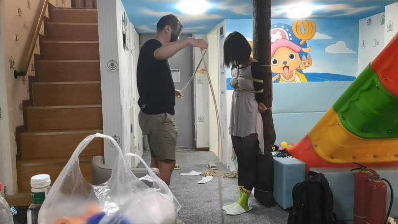 【JS】【激辣】黑丝棉袜单腿吊丝袜堵嘴胶带蒙眼抚摸TK