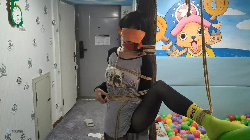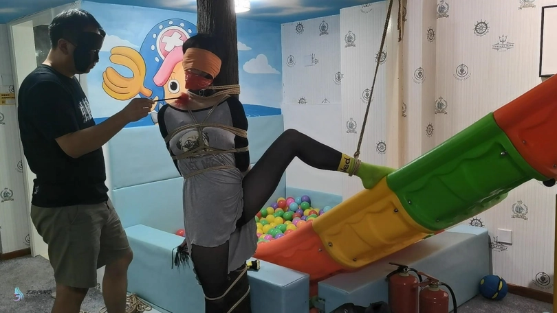 › 【JS】【激辣】黑丝棉袜单腿吊丝袜堵嘴胶带蒙眼抚摸TK