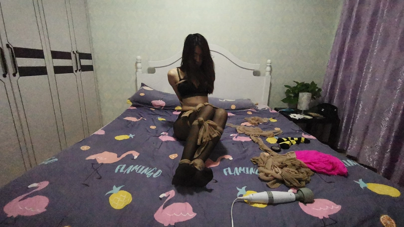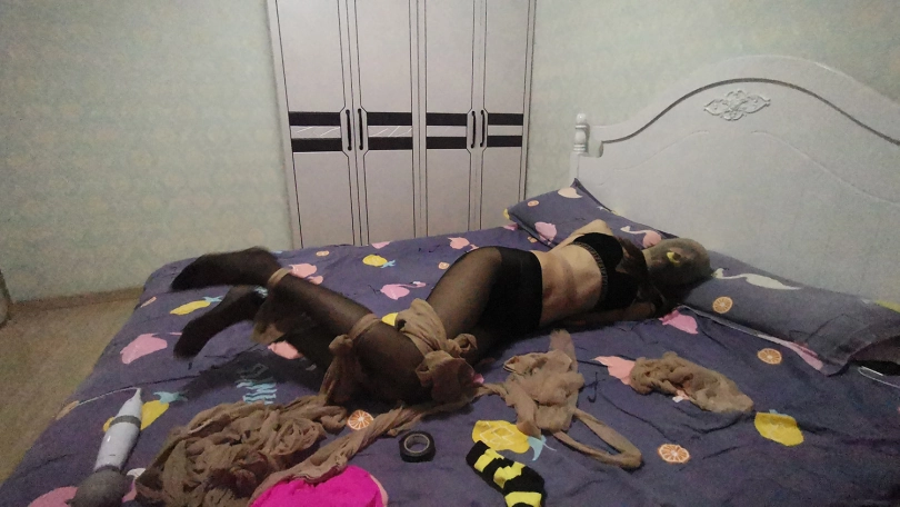› 【JS】瑾萱-丝袜束缚 棉袜堵嘴套头 粉色丝袋全包 [不可描述]棒刺激
