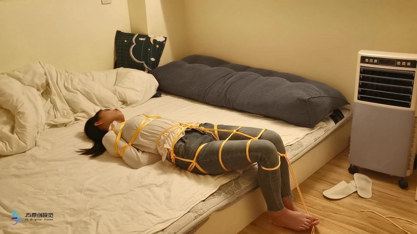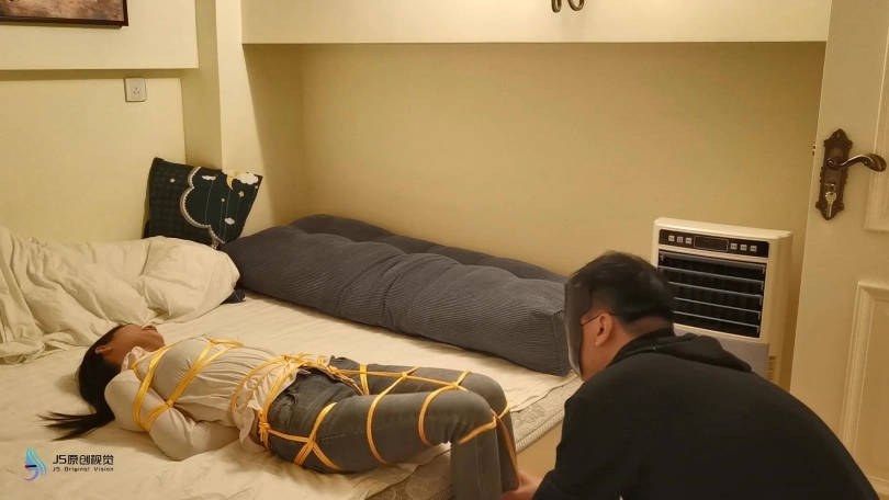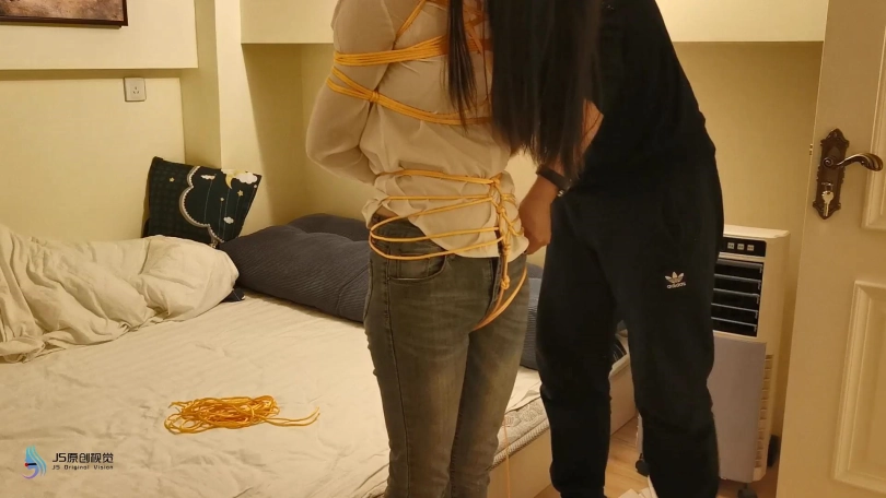 › 【JS】小冷 白衬衫牛仔裤 裸足 金色丝绳紧缚