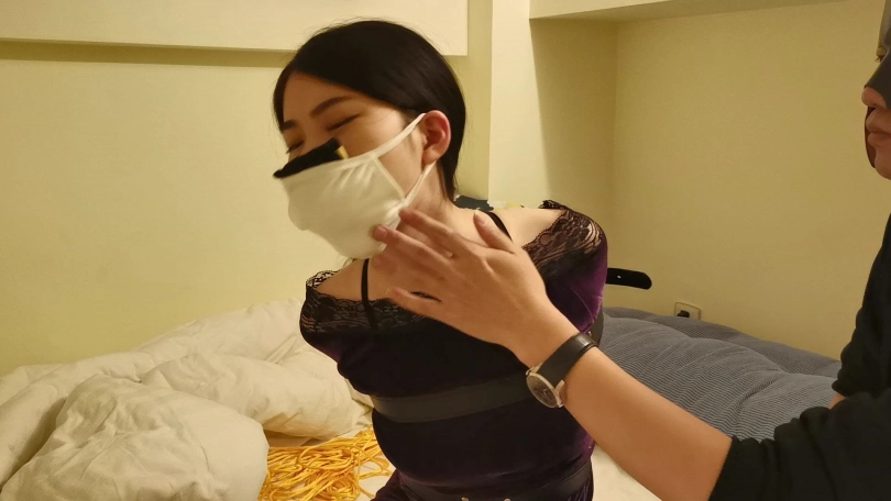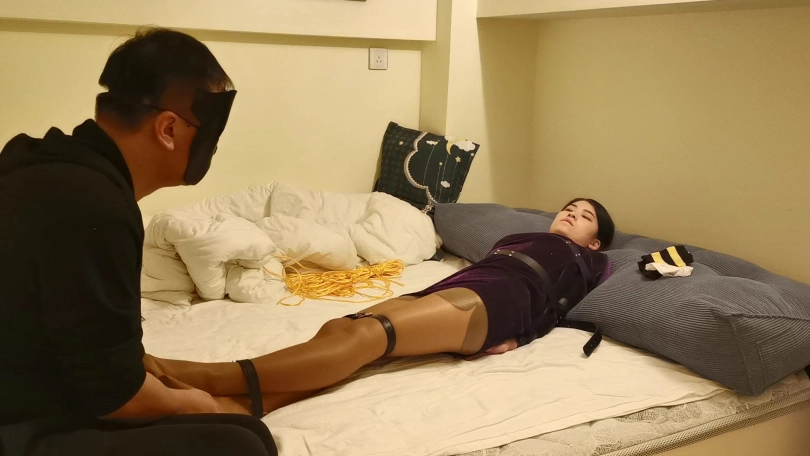 性感的睡衣,油量丝袜。束缚带驷马束缚。棉袜堵嘴封鼻,口罩固定,丝袜套头。挠痒,最后将房间灯关掉,对她说,晚上就留她一人在这,这房间之前出过事,原来的房主已经。。。小冷真害怕了,不断的呜呜叫,用力挣扎想挣脱束缚。但我还是关上了房门离开,留下她自己体验恐惧放置。