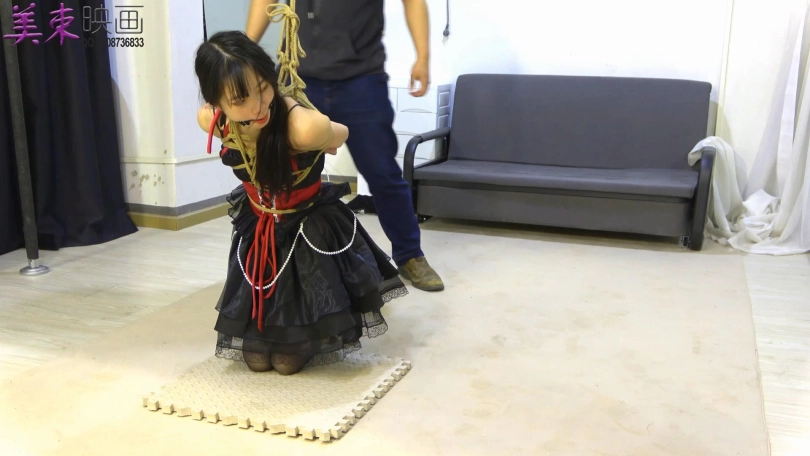 玩弄之后,彪哥将华冰冰按上图所示吊起来。开始联系买家。华冰冰又开始剧烈的挣扎。