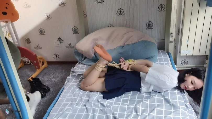 晚上这丫头有饭局,怕有绳痕,所以基本没敢绑紧,只是简单绑绑让她体验了下。
