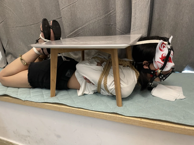 后来将罗菱菱来了一个蕾脖式五花大绑,牵着她上楼梯,脚上靠着脚链,上楼了之后和她安排了一个任务