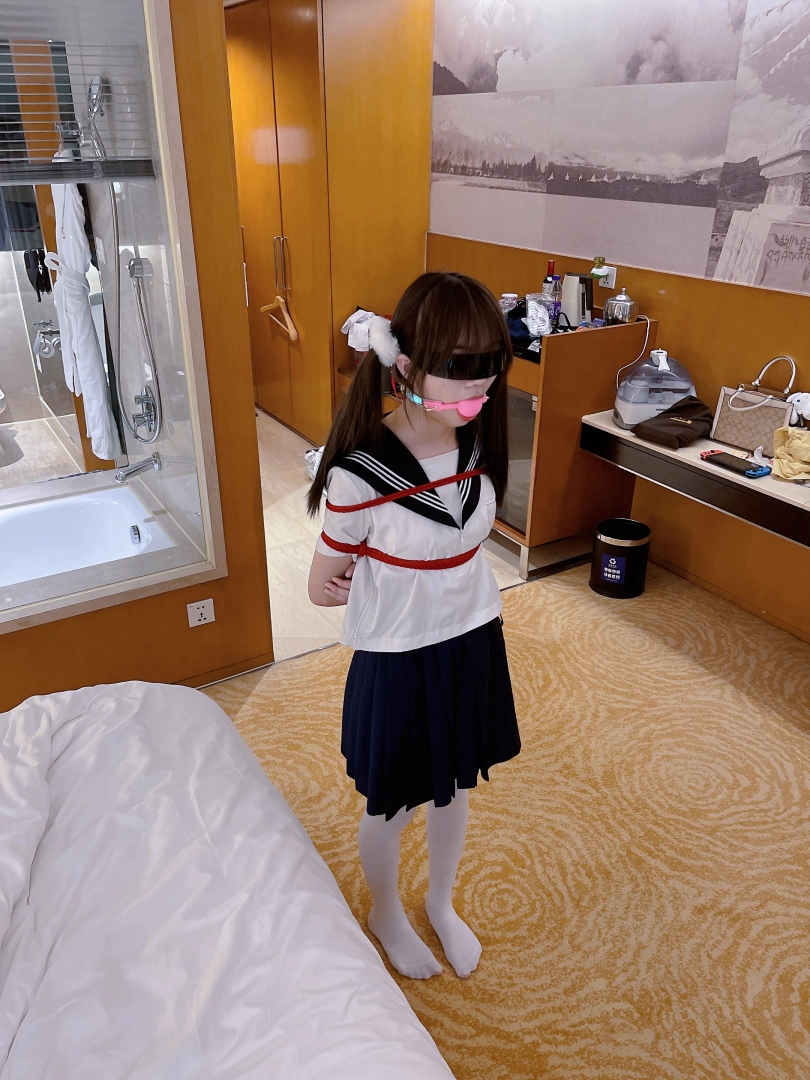 茶茶一直很害羞,这次打算带茶茶尝试羞耻的伪装拘束:把茶茶绑好后带上口球口罩,披上外套后出门。茶茶需要穿过酒店大堂、门卫、保安并在室外散步一阵子才允许回来哦~