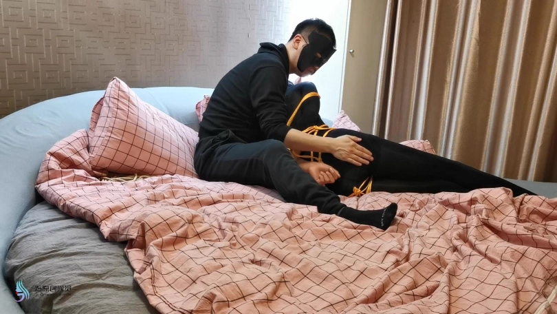› 【JS】媛媛 连体衣 金色丝绳捆绑挠痒 SP 口球 眼罩 丝袜套头 玩足