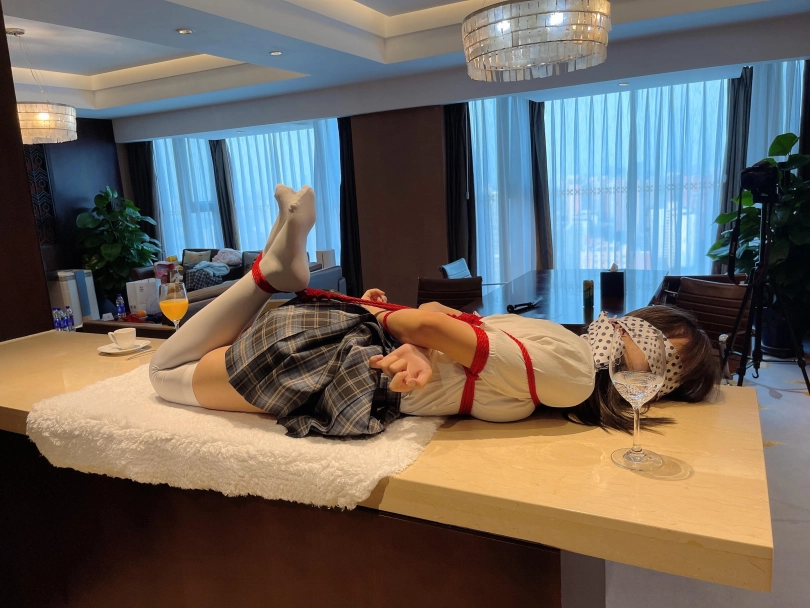 可怜的小茶茶就这样被驷马捆绑放置在吧台桌面上,周围人审视的目光让她浑身不自在,羞耻感让茶茶不断的扭动着身体。男人时不时的抚摸让她不安感越来越强,哪怕放置时也下意识害羞的扭动着自己的娇躯。小萝莉可爱的娇躯被无情的拘束起来,大肆展示着。少女不知道的是,客人们马上就要到了....