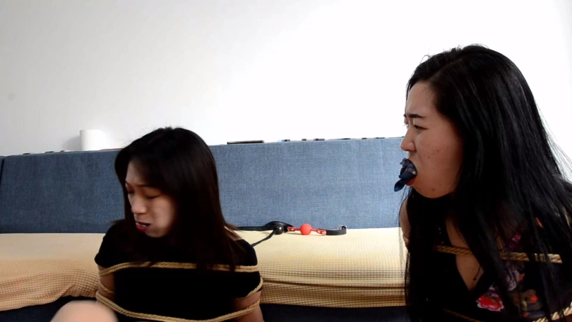 看点:双女捆堵挣扎、互助解绳逃脱未遂惨遭严厉捆绑、细致塞嘴过程与胶布绷带严密封嘴特写、驷马封眼状态下扭动肉色丝袜脚挣扎