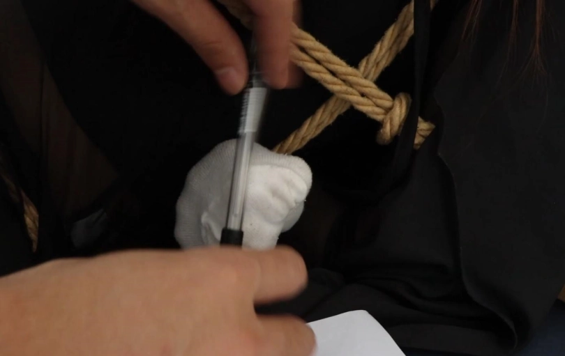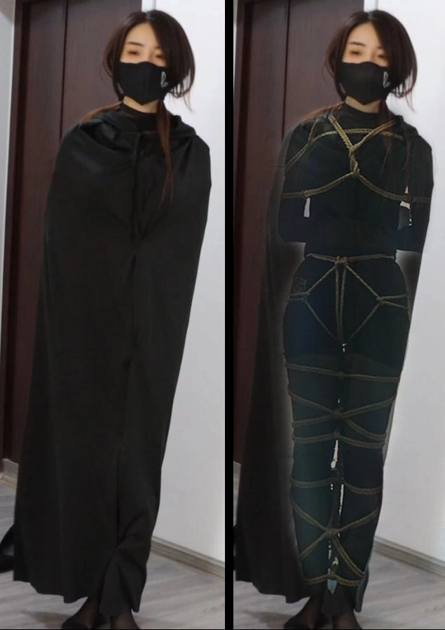 模特为非常有御姐冷酷风格的美女,这次拍摄了之前漫画大家很喜欢的伪装美女,突然出现的奇怪美女,请进家来却呜呜的不说话,最后美女费力挣脱大衣才发现内藏乾坤。密密麻麻的黑丝性感娇躯。