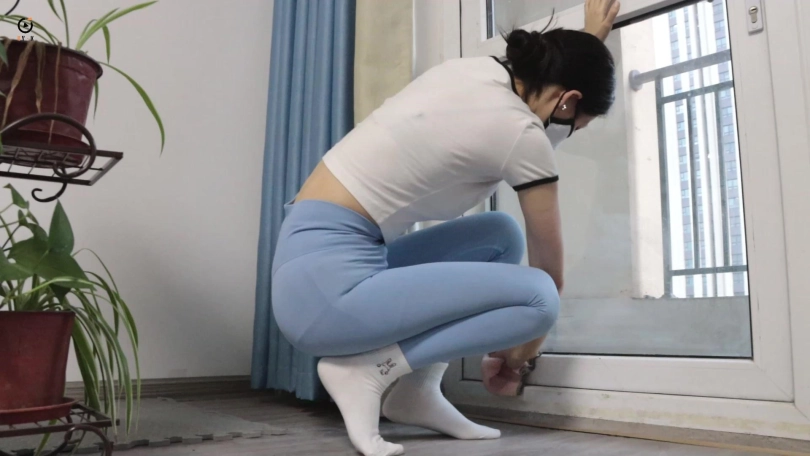 门铃响了,保洁小姐姐穿着长风衣,双手插在口袋里,身上挎着一个小包,脸上带着的白色棉口罩,眼睛带着笑容,但却一直不说话。。。。。