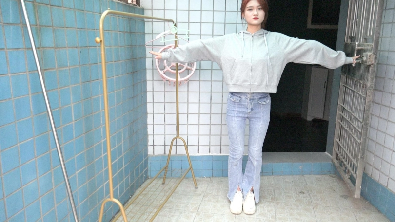 娜娜迫于威胁,说:“就是把胳膊向两侧端起来。。。”