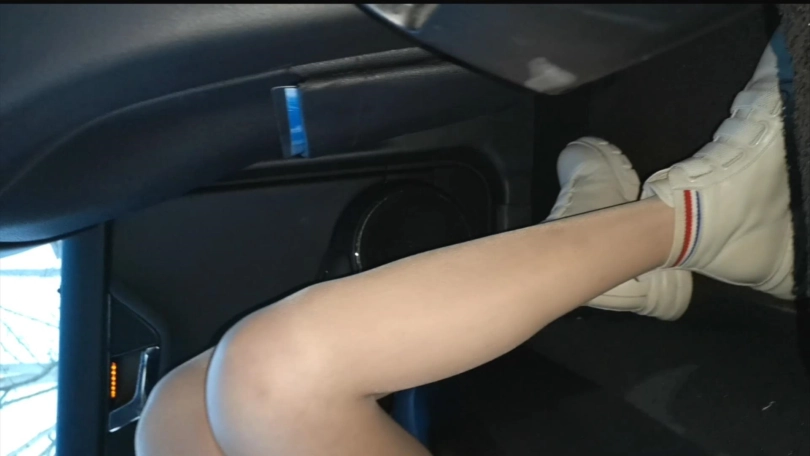 在车内,助理看着惠姐的肉丝就难以把持自己的饥渴