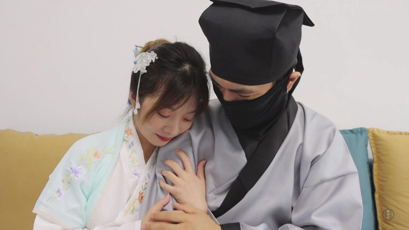 对于一个久居深闺的女子来说,这似乎太过于苛刻了,于是小扇在途中掉落在地上,待云瑶想要弯腰再次用口叼住扇柄时,巩生制止了她,他将小扇拾起后用手帕擦干净扇柄,并将扇柄再次含在云瑶的双唇之间。巩生此举也意味着他并非是个只顾自己的男子,他展现出了能够与云瑶互相帮扶的决心,当接过云瑶的小扇,云瑶幸福的伏在巩生的腿边,享受着巩生对她奖赏般的摸头。