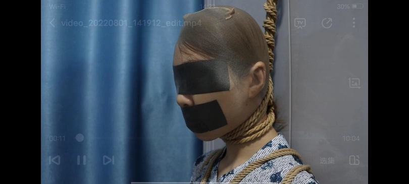 黑丝空姐遭到绑架,醒来后发现自己已经被绳子捆绑全身,眼睛和嘴巴都被黑色胶带封住,绑匪为了防止胶带脱落,还给空姐套上了特制的丝袜头套,然后还将空姐的脖子系上绳套,固定在衣柜把手上,这样,空姐就完全无法逃脱了。。。最后,丧心病狂的劫匪决定。。。。。。