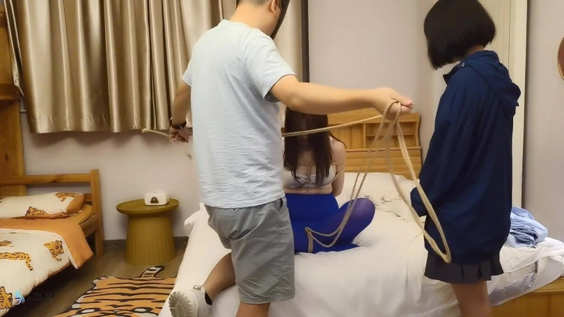 › 【JS】【露楠】蓝丝内衣团缚棉袜堵嘴丝袜套头胶带缠绕