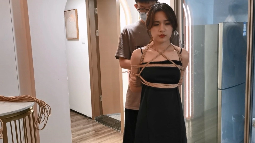 圈里好久不见的葡萄,这次绑的是日式紧缚,然后跪着吊在栏杆上,这么直直的跪着让模特很难受,只剩下无助的挣扎了。