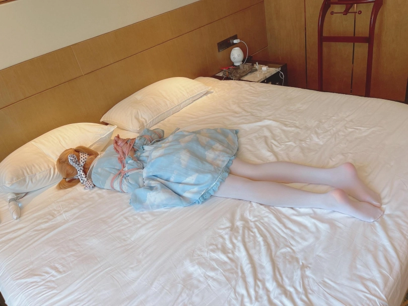 让茶茶穿上白丝和Lolita,结结实实的绑个后手观音,加上多层绳子带来的牢固驷马,茶茶的白丝脚底就乖乖翘起摆在人面前,随意玩弄啦~