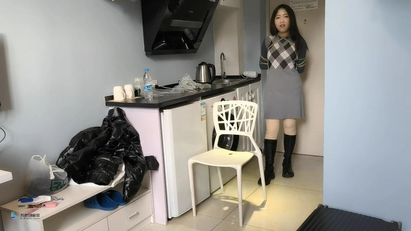 捆绑教程的片子。首先我采用中式变种捆绑将“七穗”捆绑起来。然后让“激辣”给她松绑。并用同样的方式再重新将“七穗”绑起来。嘴巴也用绷带缠绕。。。