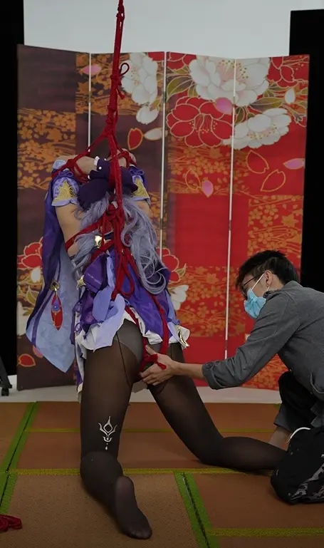 直播中的刻晴被大哥一份礼物要求吊起单腿,还不满足,强制跪立后是强制单腿站,还有人对她上下其手,而她只能无助被调戏