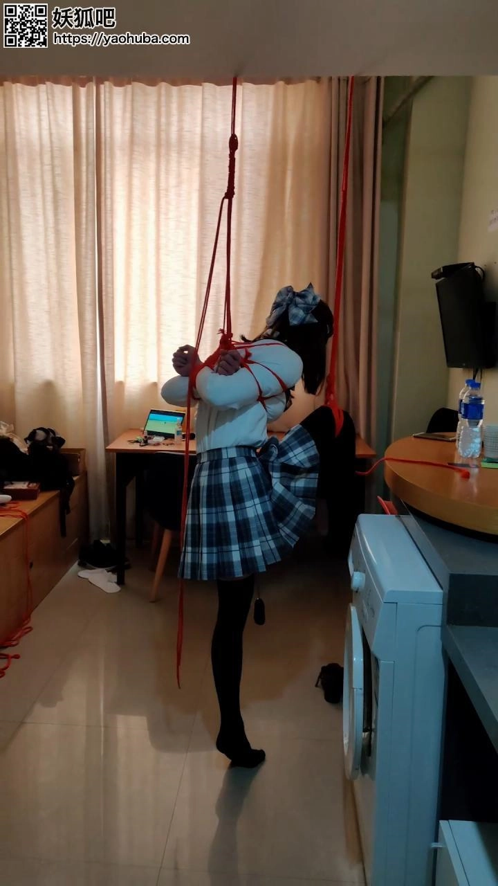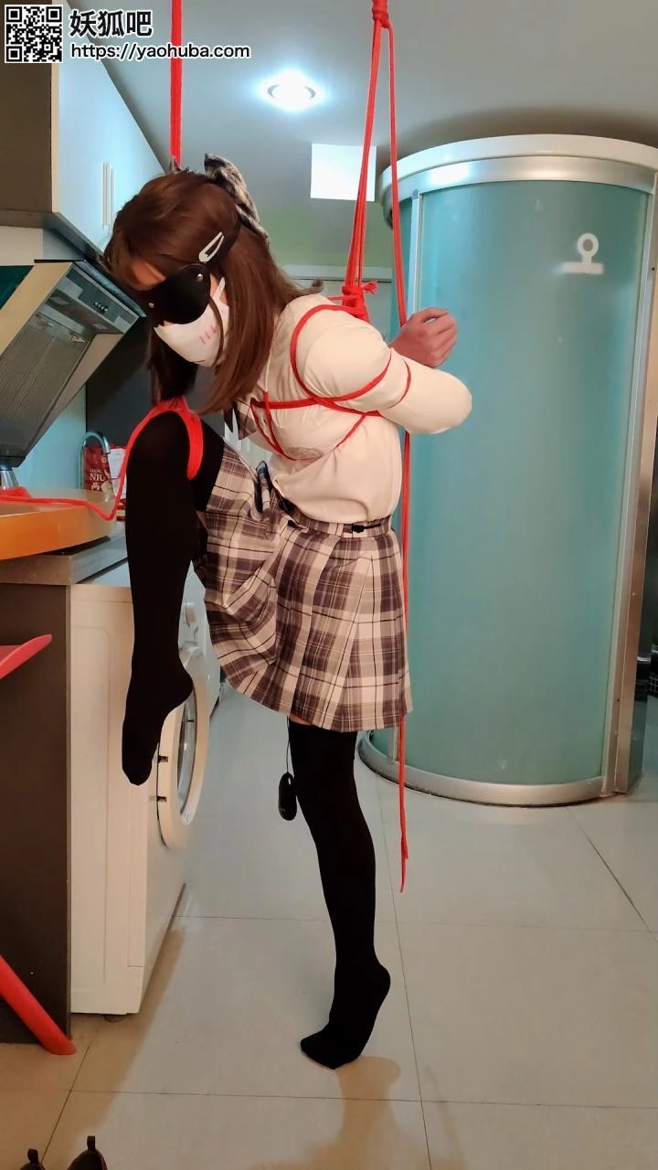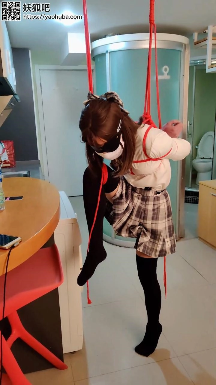 › 【坎喵】女装子JK单脚吊缚+驷马调教