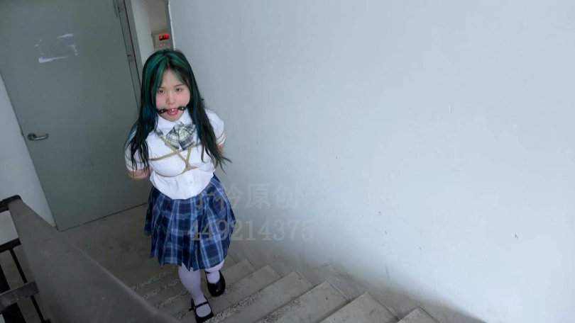 【子衿】琦琦五花口球大量口水室外挑战爬楼梯