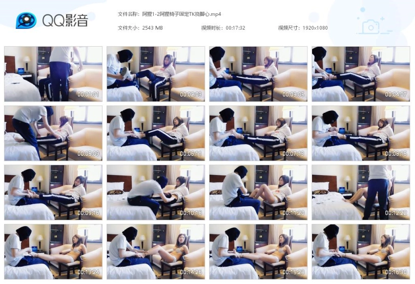 关键词:阿狸 椅子固定 TK挠脚心 手铐 脚铐 脚趾铐 运动装 内衣 白船袜锁脚趾铐