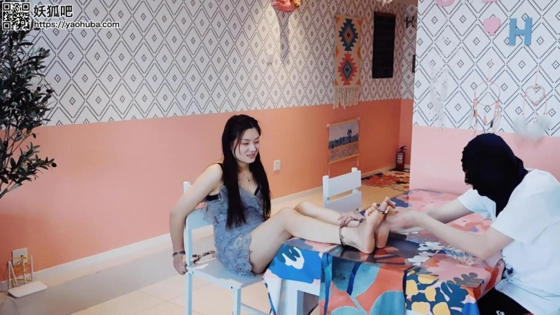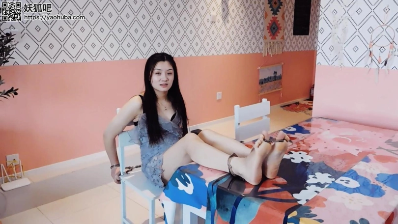 【趾间艺束】洋洋镣铐椅子自缚被发现 挠脚心TK玩耍 手铐脚铐脚趾铐 小裙子高跟鞋裸足