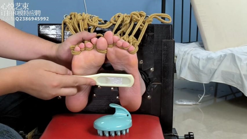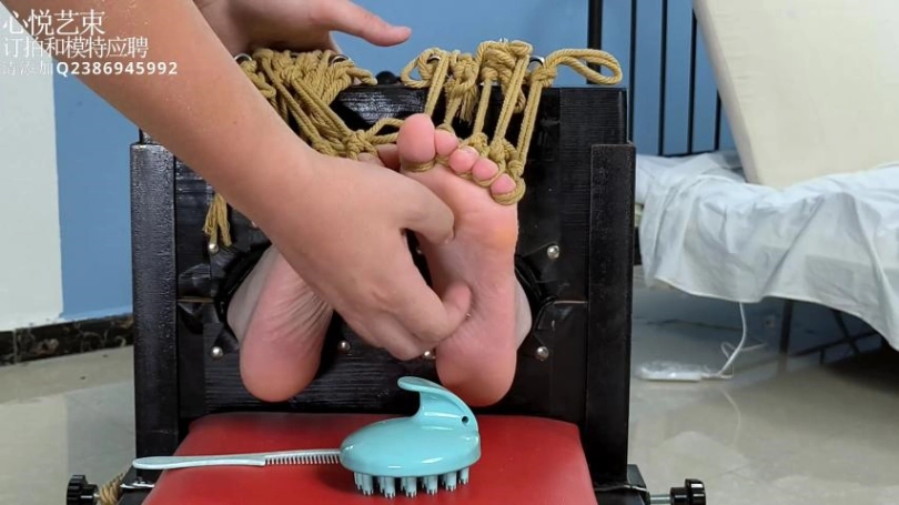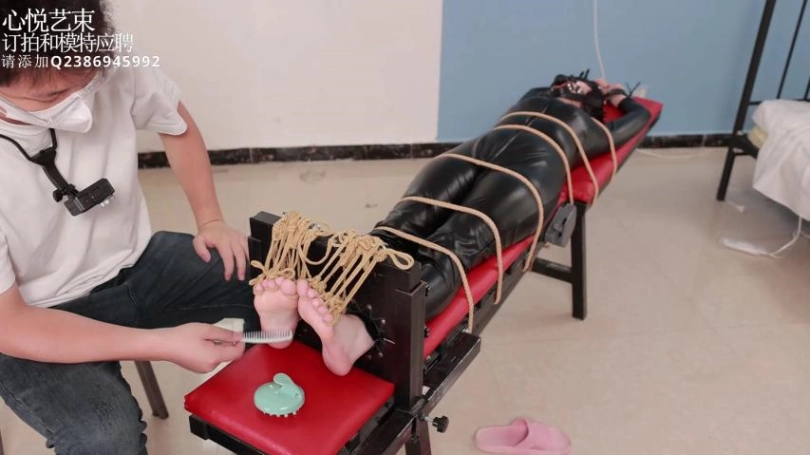 › 【心悦艺束】足控福利,皮革女王老虎凳完全拘束。脚趾全绑,马具口球。绝命TK。