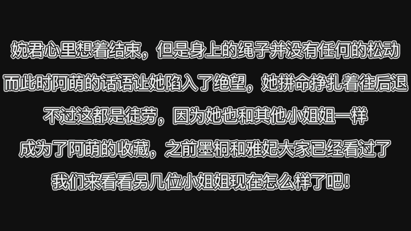 猫步轻俏的小姐姐只剩婉君一人了,此刻的她为了救出姐妹答应了阿萌的条件
