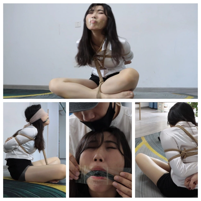 面对恩可的求饶小哥不为所动:“算你识相,我就饶你一命,但钱没到手我可不能放了你,你还得好好地呆在这。不知道口球的感觉你有没有尝过呢。”小哥一脸坏笑地将黑色口球进恩可嘴里,随后用透明胶带封住恩可的嘴巴,并用另一条丝袜蒙住恩可的眼睛,在确认恩可身上的绳子很紧之后便出门取钱了,只留下恩可一个人在房间里艰难挣扎。