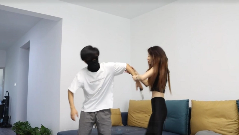 意涵看出学生的轻视,决定给他一个教训。在她介绍了一些格斗技巧后,她让学生伸手来掐她的喉咙。结果意涵在几秒钟内就制服了学生,这让学生大吃一惊。之后,意涵又让学生用刀威胁她,很快,意涵空手夺下了学生手中的刀并将其放倒。