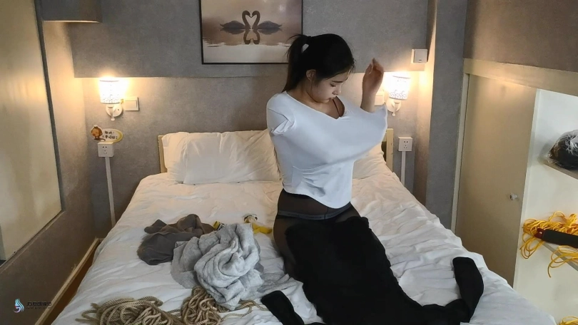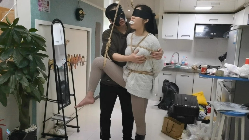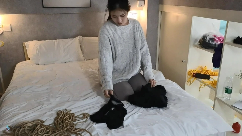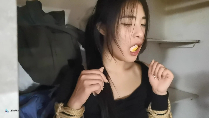 看到女孩已经开始有轻微的生理反应,医生决定换种方法继续刺激她。医生将女孩的绳子解开。将女孩带到床上,让女孩脱掉自己的衣服,并换上比较性感的服装。医生将女孩的四肢这折叠捆绑起来,看上去女孩像一只被捆绑的螃蟹。命令女孩用四肢当腿在床上爬行,并用鞭子时不时的抽打着女孩。医生抚摸着女孩的黑丝美足捧着亲吻起来,另一只手抚摸刺激着女孩的敏感地方。女孩开始呻吟,她开始喜欢上这种感觉。医生拿来女孩穿过的袜子,将她塞进女孩的嘴里,外面用胶带封住女孩的嘴,防止她吐出来。将女孩放进柜子里,医生告诉女孩她会被这样放置一晚,明天她就可以痊愈并出院。说完便关上了柜子的门,留下女孩一人在很暗的衣柜里,体验着这种被紧缚堵嘴的感觉。