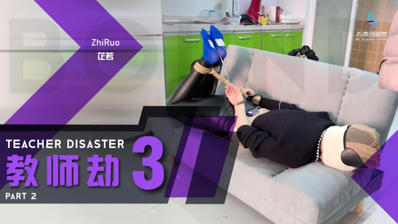 当画面再次两期时,芷若已经被驷马捆绑趴在沙发上。她的头上被套着一天连裤袜,外面缠绕着绷带,眼睛被蒙着。她只能发出微弱的呜呜声,听声音就知道,嘴巴里一定也被塞着东西。她的要不和脚底都被贴着电击片,下面敏感处也被放进了TD刺激着,不断的消耗着她的体能。相信这一定是芷若最难忘的暑假。。。
