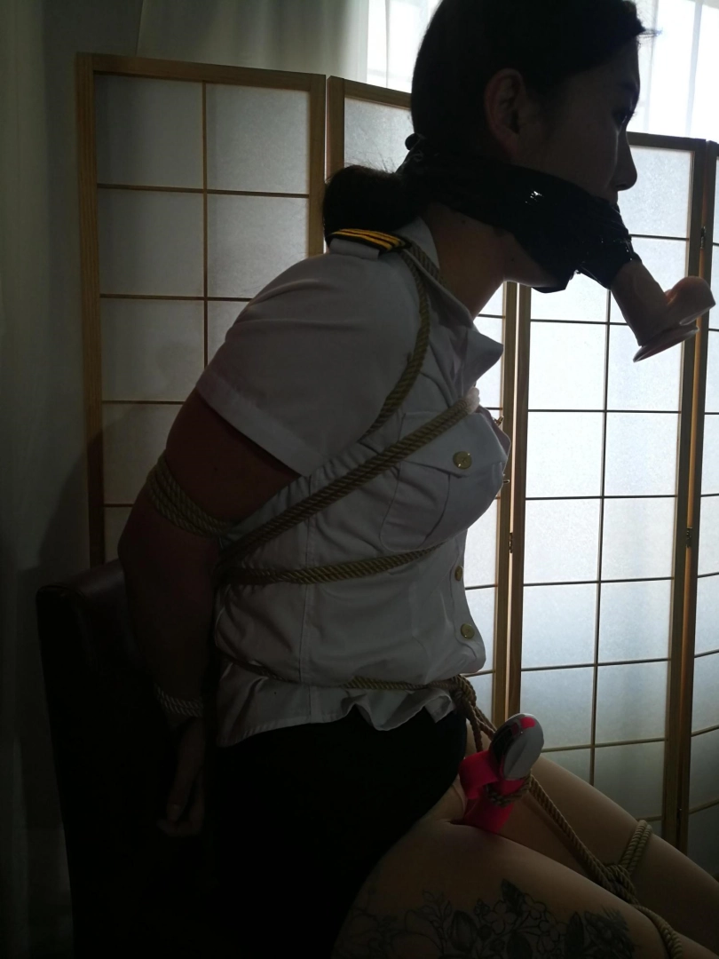 女主角穿上了OL制服与肉色丝袜 不仅仅被紧紧捆绑住 而且口中还被强制塞入了QQWJ并被牢牢地胶布封嘴 只能无助地蒙面男玩弄肉体 后更是被捆成驷马放置