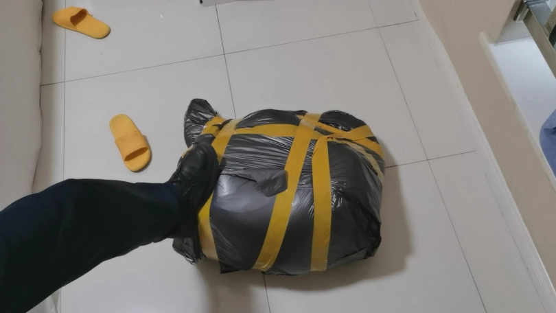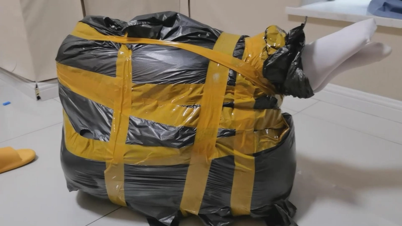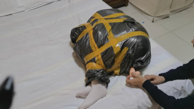 2、塑料袋包裹的不是很紧,但是很柔软也能勾勒出身形轮廓,性感的一批。