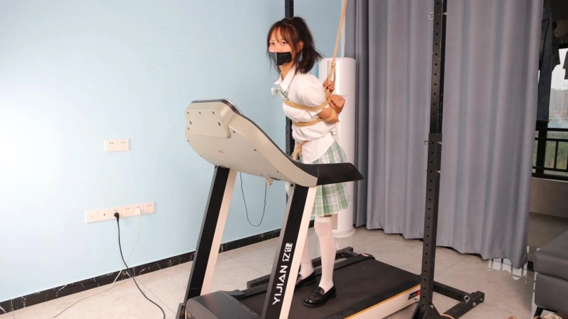 艰难站起身,帮欢欢关闭了跑步机,然后二女互相想办法解开绳索,但是文文对于欢欢出卖自己的行为很是愤怒。解开绳子之后拒绝解救欢欢,反而是加固了一下束缚,然后扬长而去。只剩下可怜的欢欢留在跑步机上继续挣扎。