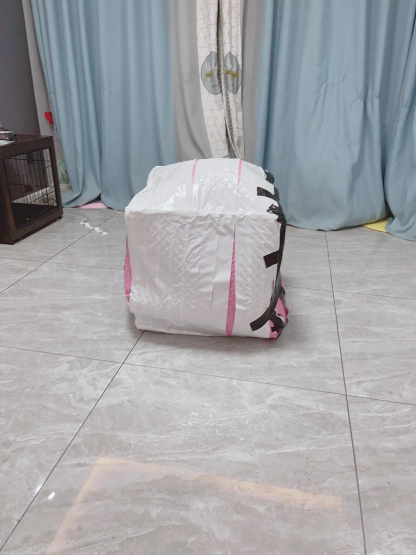 1.头手脚同时将箱子撑到最大保持几秒,便于进气。