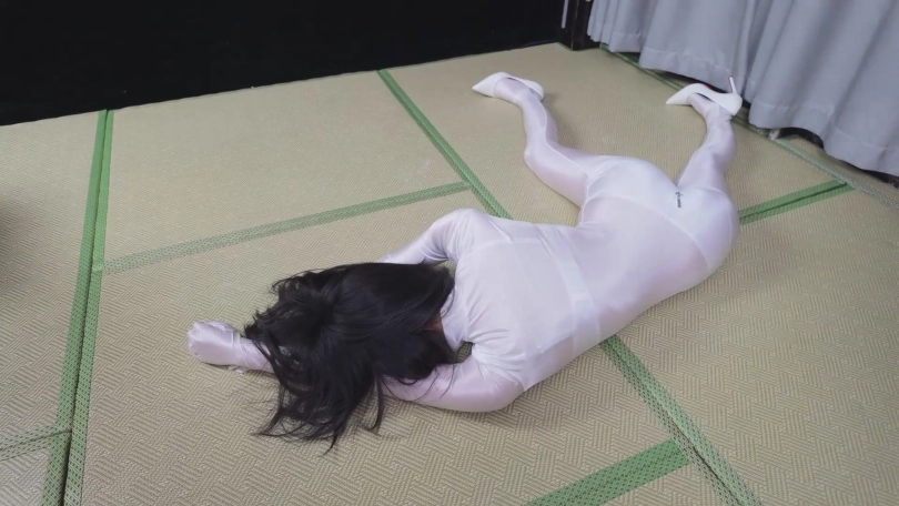 紧接上一集,嗷嗷换上了油亮白丝连体紧身衣