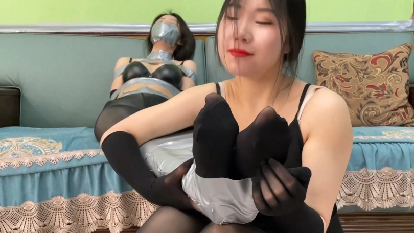 刘洋气愤的大骂起来。吴晗则说刘洋不乖,用多层胶带把刘洋整个下半张脸完全贴满。刘洋奋力挣扎差点逃出吴晗的掌控。吴晗说美女太不乖了。于是用更多胶带把刘洋捆绑了。