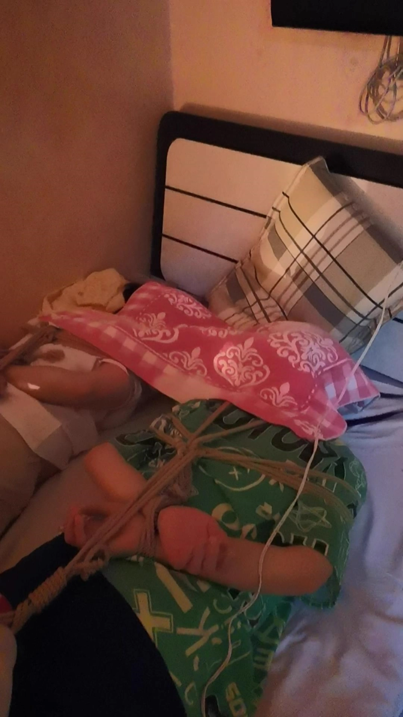 一个下面用棒棒刺激,一个裆里面塞着跳D刺激着。