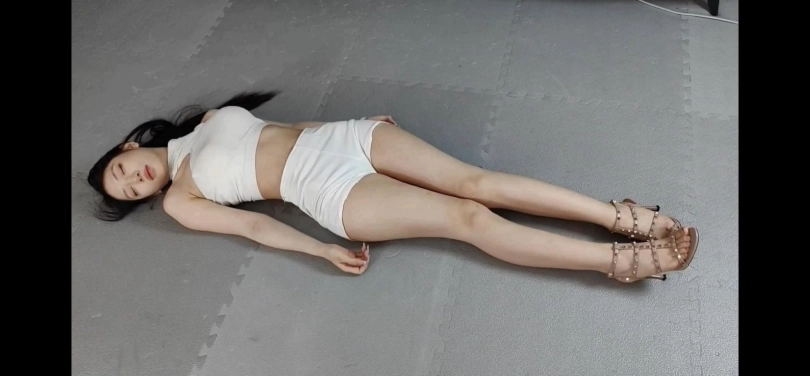 被撞晕失去意识的漂亮小姐姐被扛回家里摆弄,涉及元素有裸足、足恋、摆弄、翻眼皮等。