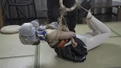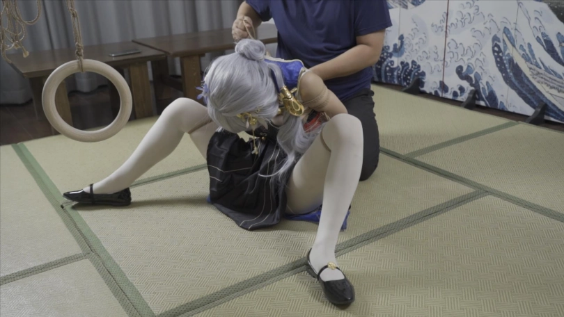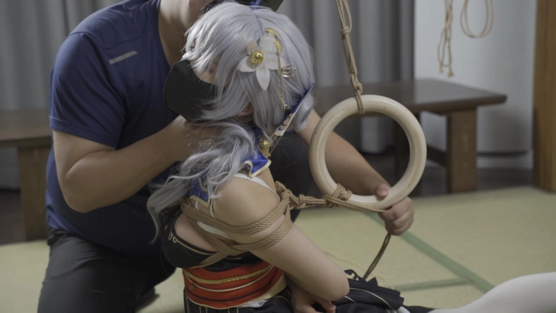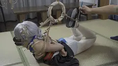 › 【象人】cos德莉莎!小0-白丝德莉莎,驷马圆环放置,随着绳子的拉升,难度逐渐升级!