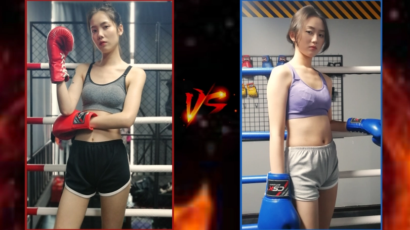 The new boxing girl Zhou(blue gloves) wanted to challenge Wen(red gloves).They all look confident.Their strength is also very close.It must be a wonderful match!