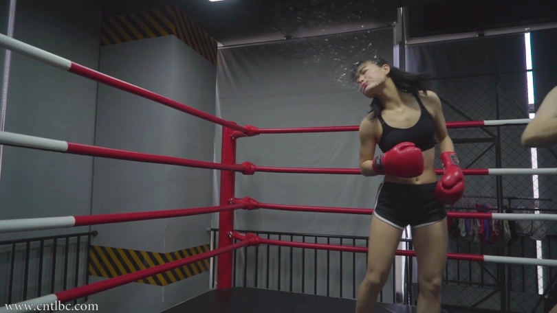 The new boxing girl was going to have a boxing match with Bing. She looks very confident. She even began to fantasize about beating Bing. In her fantasy, Bing was knocked down by her many times and spat. She began to smile triumphantly...