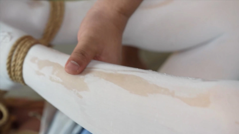 2.双脚举过头顶的海老缚,固定在竹竿上,td放置