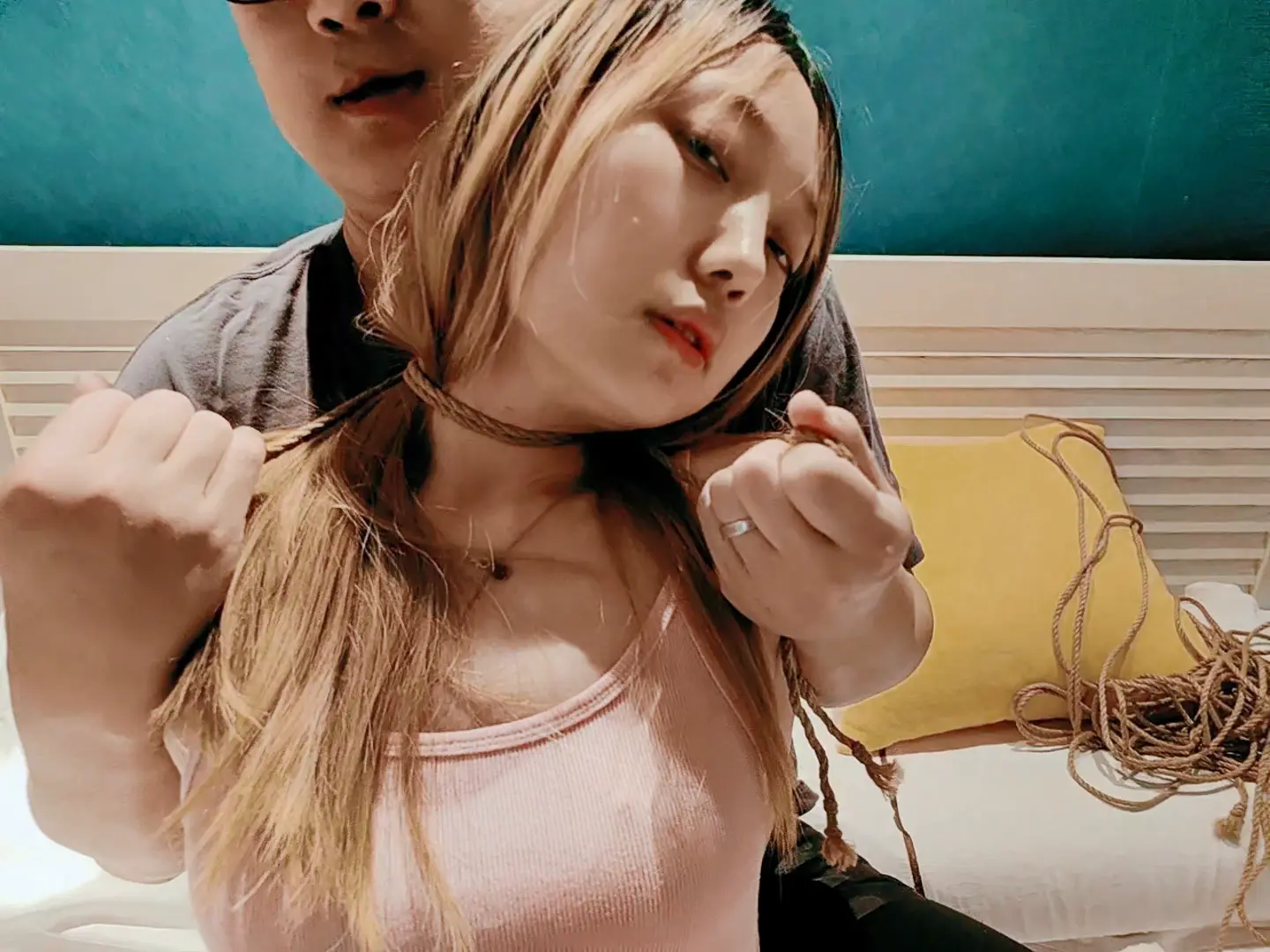 穿着黑丝高跟的小女奴小钰被直臂紧缚放置在床上,接受主人抚摸全身,打屁股的惩罚TJ。奴性强烈的小钰被刺激出了欲望,央求主人用绳子勒死她以此让主人满 足。主人再三同意了她请求,用绳子尝试勒住她的脖子,在弥留之际松开了她。跟小钰确认是否要将自己的生命奉献给主人?得到肯定的答案之后,主人又将绳子勒在了小钰的脖子上,这一次,没有松开。小钰的美腿在不断地绞动着,蹬踏中渐渐丧失了活力,最终沦为一具美艳的女尸。