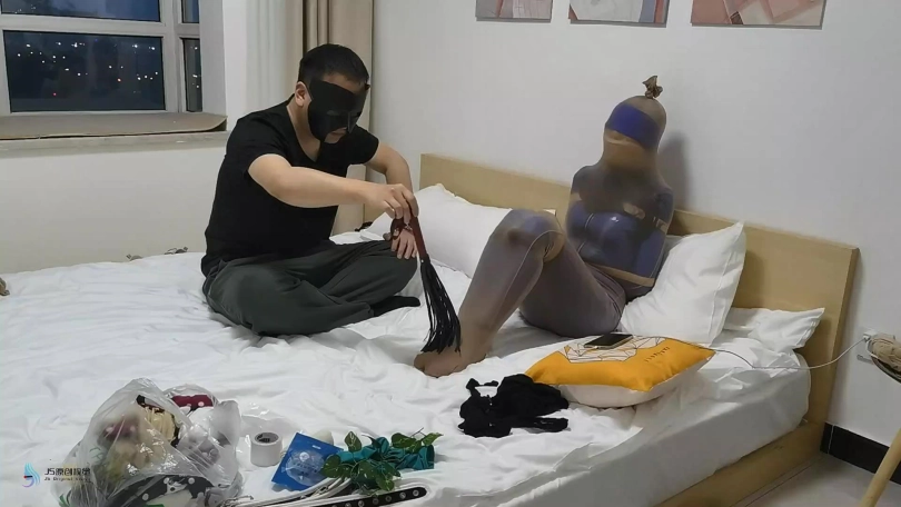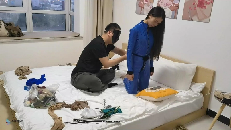 【JS】【宫怡】蓝胶衣丝袜捆绑堵嘴胶带封堵口罩丝袜头套全包鞭打挠痒