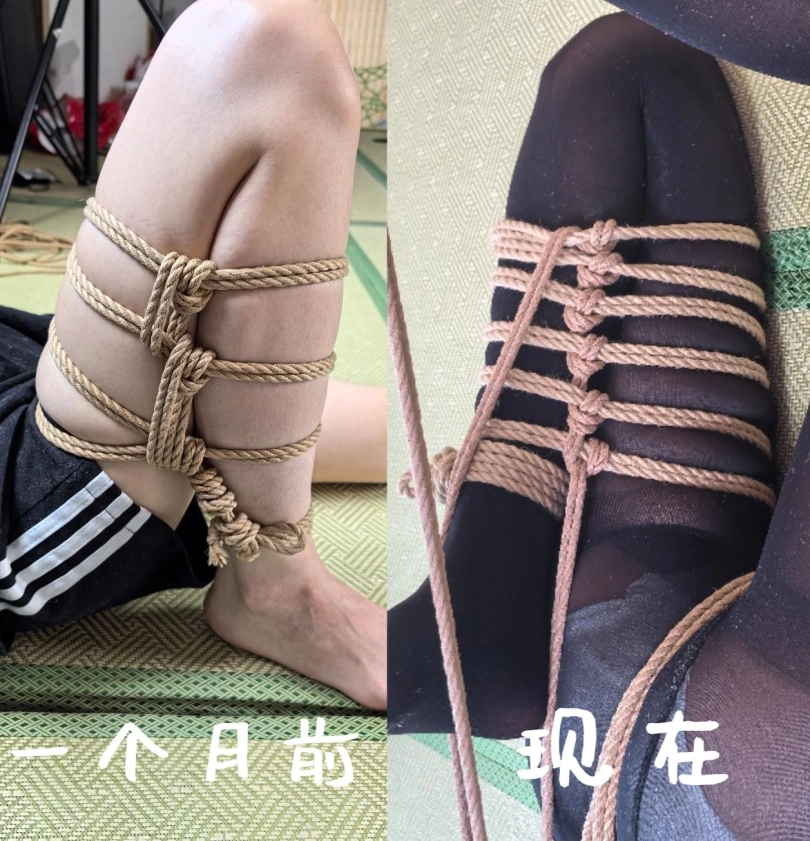 这次真的觉得折腿缚绑的很好看!大伙就猜猜跟谁学的吧hhhh,只是左脚的绑法还有待研究,本来是打算在右腿放[X_X]的,但是跟模特不是特别磨合就没这么做,算是有点可惜吧......