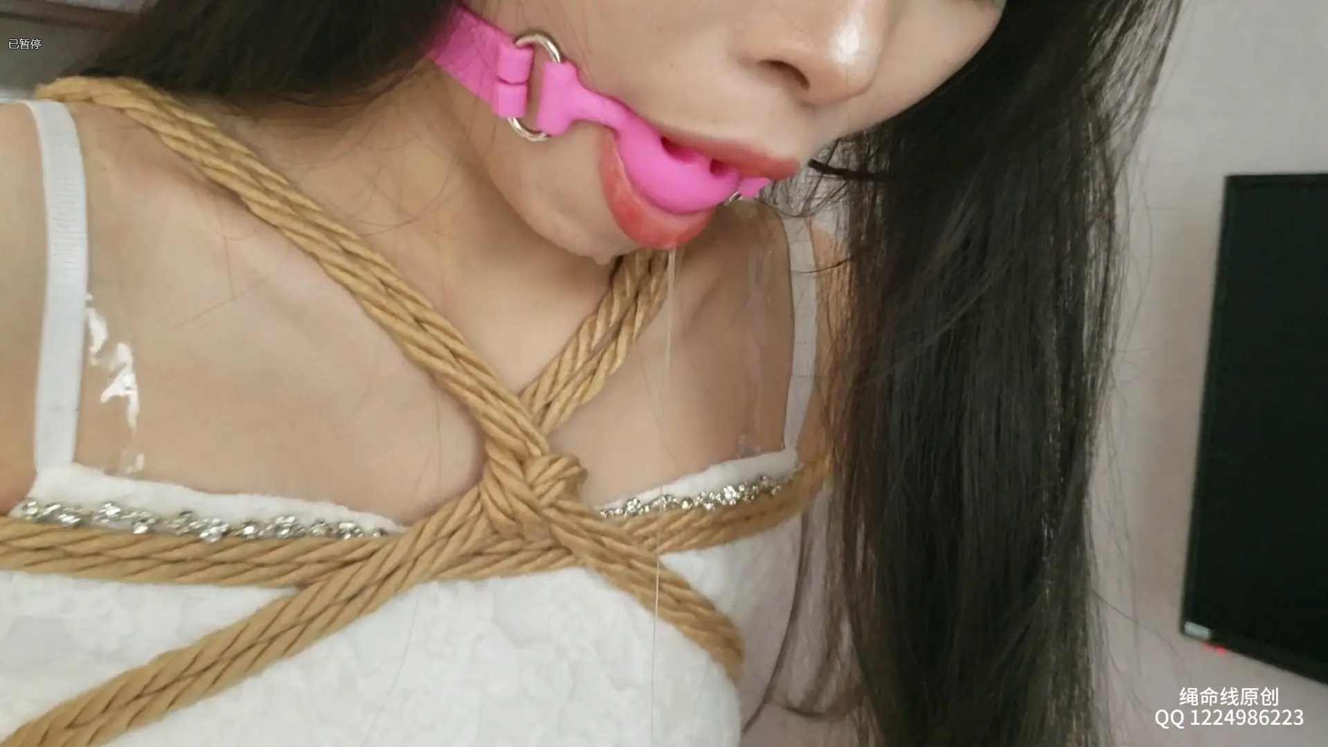 蓝羽走绳玩嗨了,走着走着还要怼着绳结磨[X_X],动不动淫叫一下,口球戴上口水也是哇哇流,再加上穿上高跟鞋的玉足搞得绳师反应极大,搞得都想舔一口,这妹子是真有感觉啊。